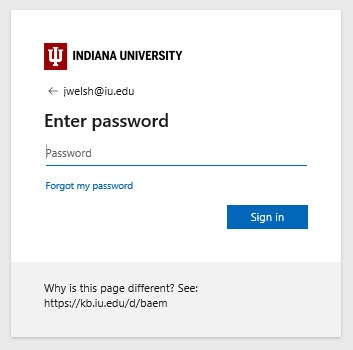 Next enter your network password at the IU branded sign in asking to "Enter password" and then click the Sign in button.