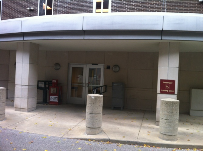 The parking lot on Dunn Street just East of the Poplars Building is permit parking but there are a few metered visitor parking spaces in the northwest corner of this lot. There are also a few metered parking spaces on Dunn Street.